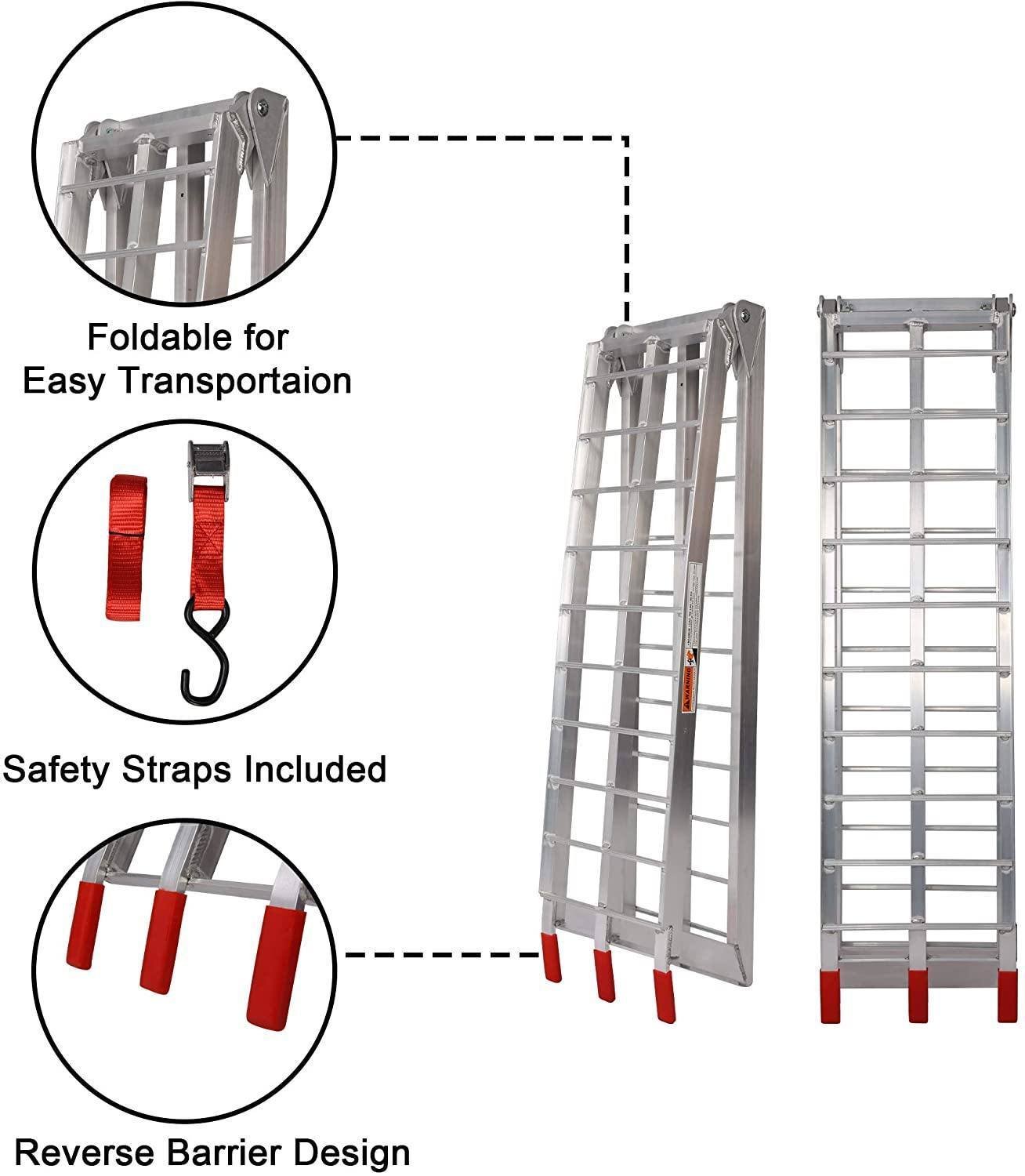 Powerful Load&High Quality: Made of high-strength and lightweight aluminum makes the loading ramp more robust, durable, and anti-rust. Easy to handle loads up to 1500 lbs.