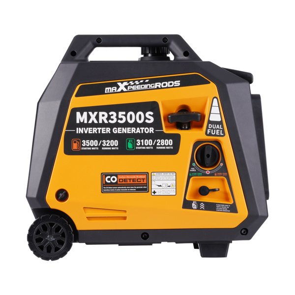 Features:*Dual fuel:Using gasoline; produces 3500W starting watts &3200running watts. Using LPG; produces 3100W starting watts &2800running watts. It can power air conditioners and many other small appliances such as refrigerators; coffee machine.*Environmentally friendly: LPG runs more environmentally friendly; quieter; cheaper; reduces vibration; extends engine life. Enjoy running time at 50% load up to 13.5 hours.*Multi-function display: easy to monitor voltage and frequency power; display remaining fuel; which is suitable for timely fuel change; display cumulative runtime; which is suitable for later generator maintenance; display unique runtime; perfect timer function.*Provide cleanpower: Inverter technology generates pure sine waves to provide safe; high-quality power for sensitive devices without affecting their useful life. Can directly charge phones; laptops; cameras and other digital devices*Protection:Carbon monoxide (CO) shutdown; and overload protection*Electric Start:Fast start technology; one-press only; 3 seconds to start-up*Multiple Outlets:2x 120V 20 Amp Outlets1x 120V 30 Amp Outlet2x USB Outlets*Parallelready:Double your power with parallel capability*Certified:EPA Certification&Passed the ANSI/PGMA Standard&ISO 9001:2015 certified.Specification:Running Watts: 3200W(Gas)/2800W(LPG)StartingWatts: 3500W(Gas)/3100W(LPG)Fuel Type: Gasoline/LPG25% loadRuntime: 11h(Gas)/24h(LPG)50% loadRuntime:6.5h(Gas)/13.5h(LPG)Starting System: Recoil Start/Electric StartRunning Amps: 26.7A(Gas)/23.3A(LPG) Peak Amps: 29.2A(Gas)/25.8A(LPG)AC voltage: 120V AC Frequency: 60hzFuel Tank Capacity: 1.6Gal Oil Capacity: 0.12GalEngine Type: 4-stroke; OHV; air-cooledEngine Displacement: 145ccOil Type: 10W30Volume Level (23 Feet): 62dBNet Weight: 55lbsGenerator Size:20.9×12.2×19.9Inch (L*W*H)Note:1. Applicable altitude: areasbelow 5000ft. More than 5000ft will affect its stability and power.2. Optimum working ambient temperature of generator: 77 ℉. Normal working temperature:5 ℉to 104 ℉.3. Please make sure the engine is filled with full oil(add oil to the thread) before every starting; otherwise it will fail to work
