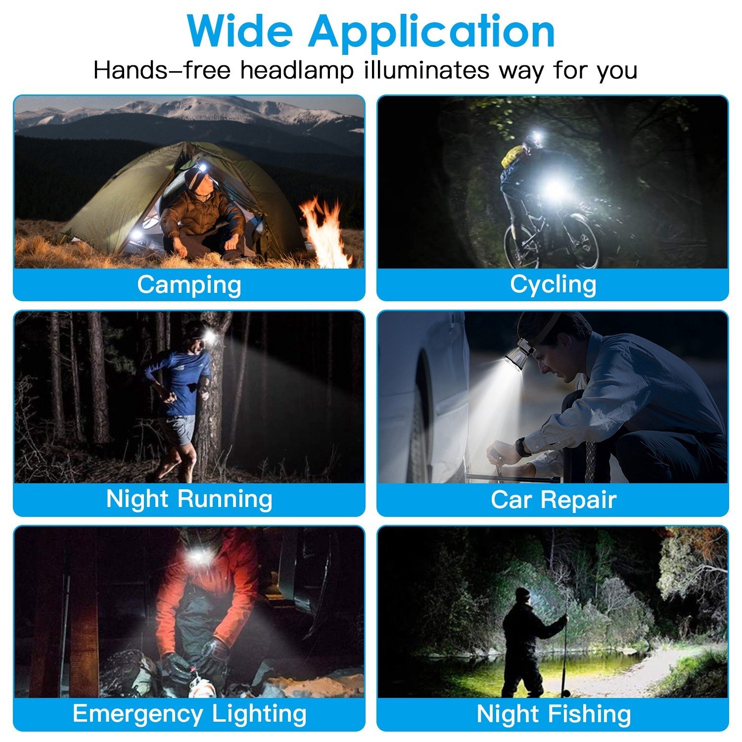 *3 Lighting Modes*:This headlamp is equipped with 3 light modes,including strong light,weak light and quick strobe light to meet different scenarios. Besides,you can adjust the lamp head 90° up and down to adjust the lighting angle.